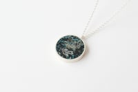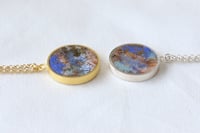 El colgante Vía Láctea pertenece a la colección "Universus", una colección de piezas en las que se combinan las formas circulares con las texturas creadas a partir de materiales procedentes de la naturaleza.